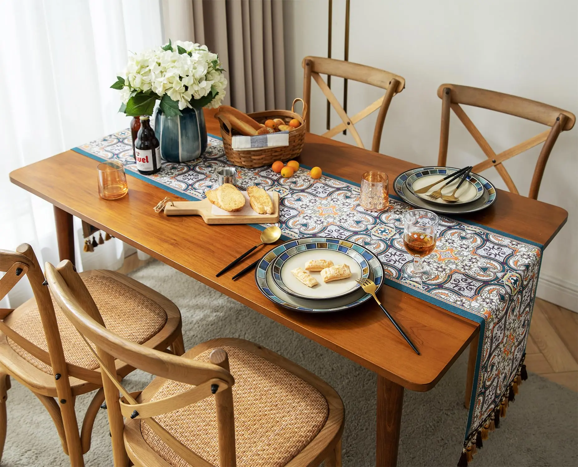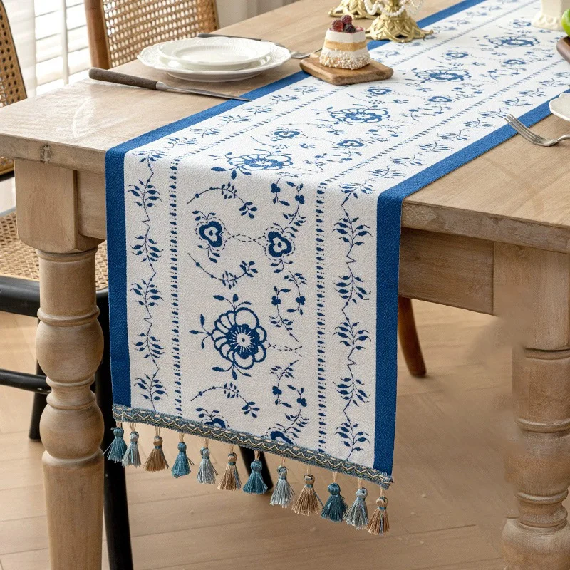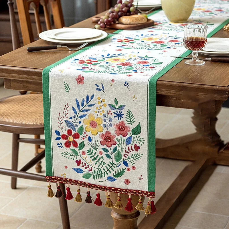 Vintage Table Runner, Retro-Luxury Tassels Series for Kitchen Dining Table Holiday Decoration